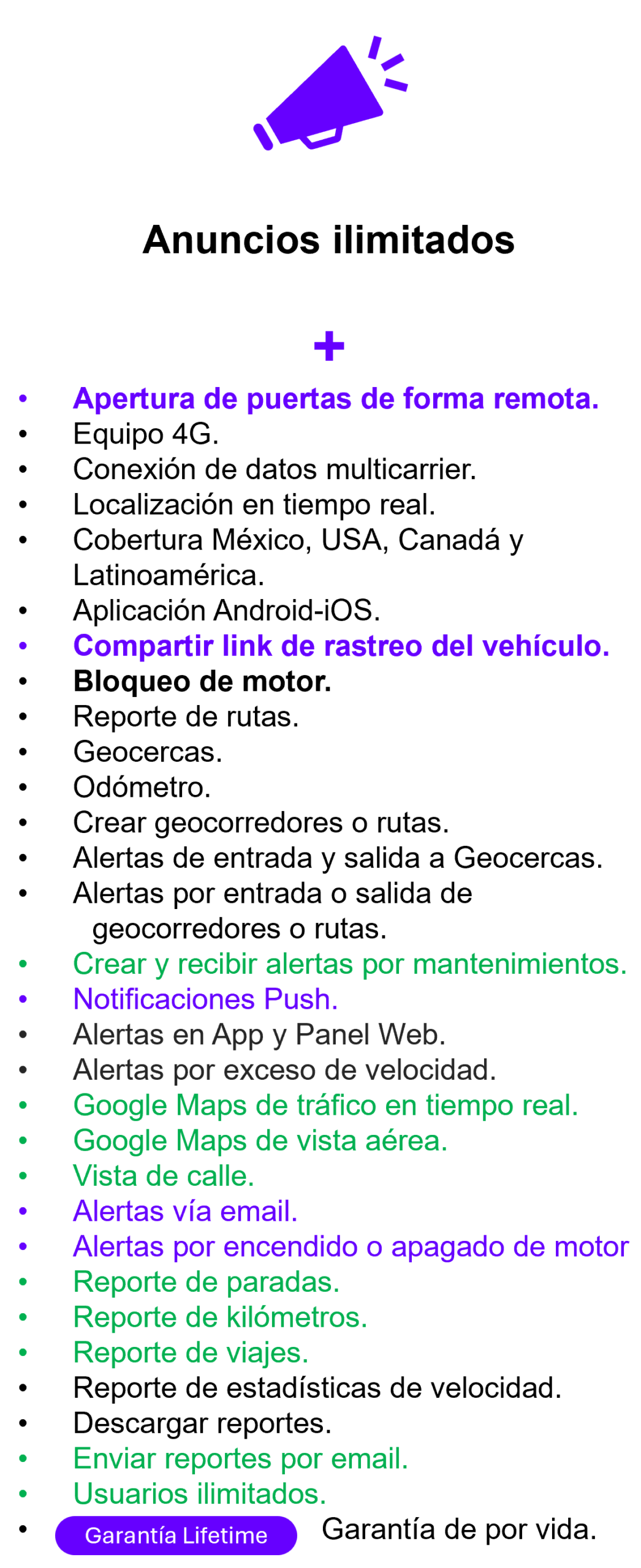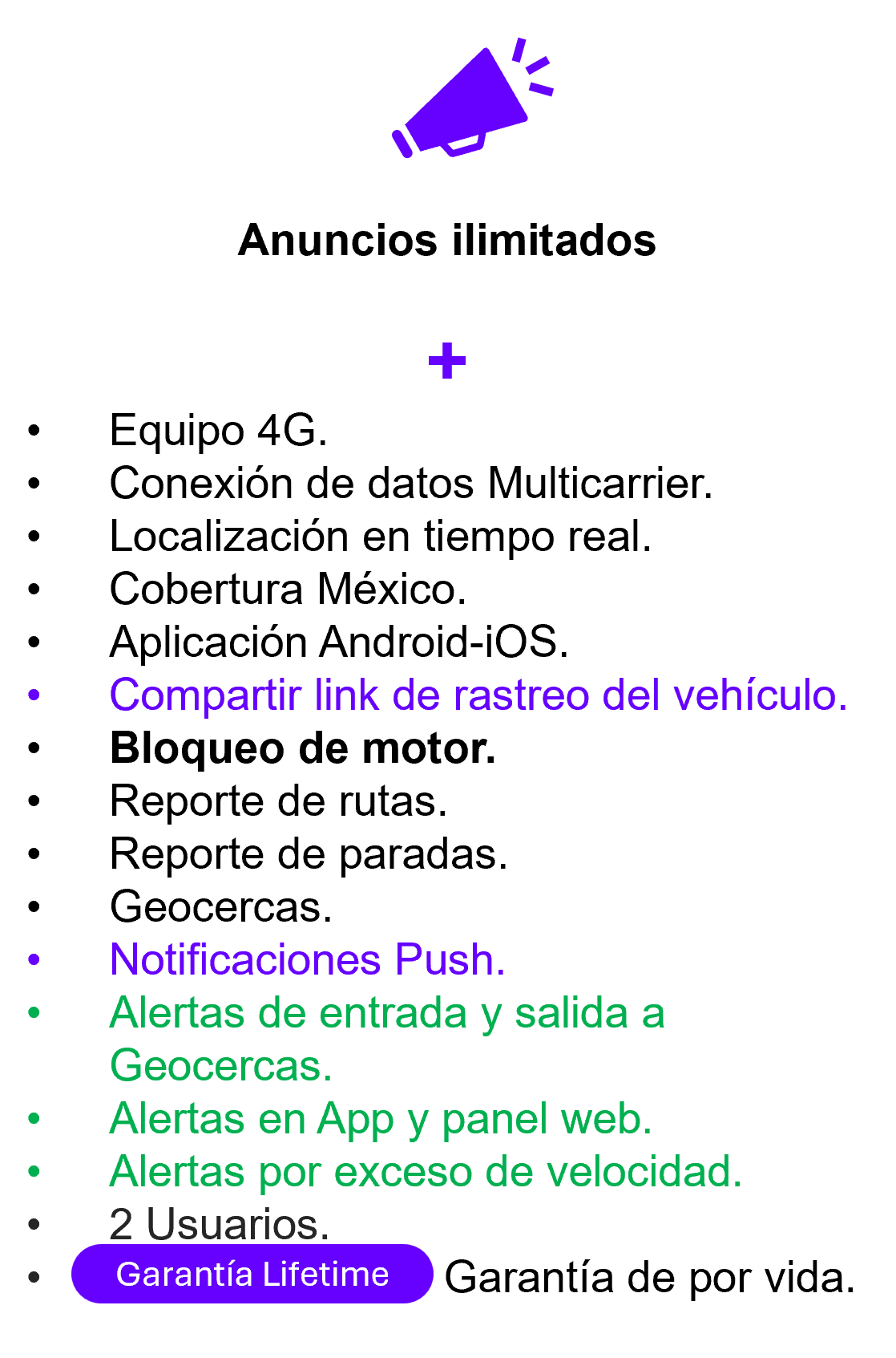 Máxima visibilidad, control total y tranquilidad absoluta. Pensado para quienes buscan monitoreo avanzado y control completo del uso del vehículo.